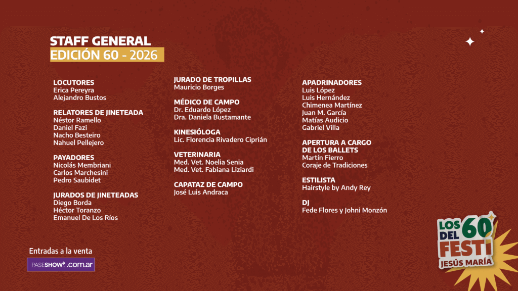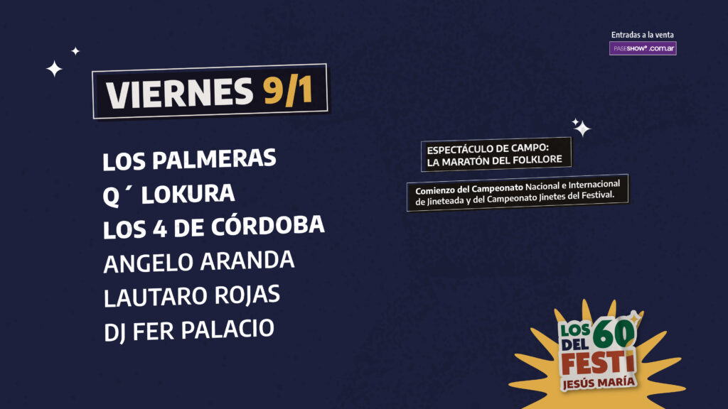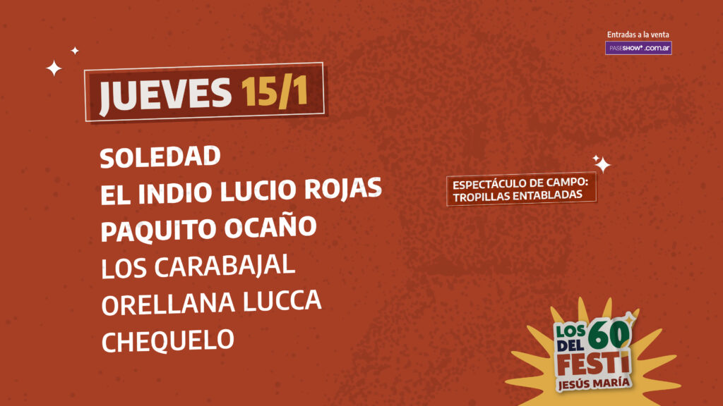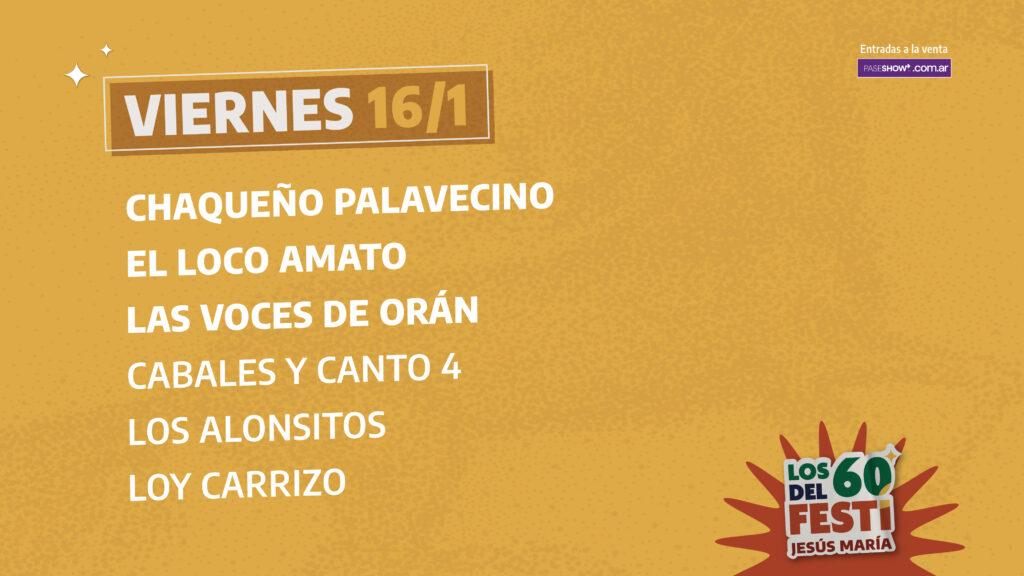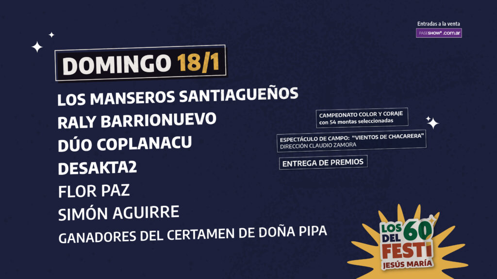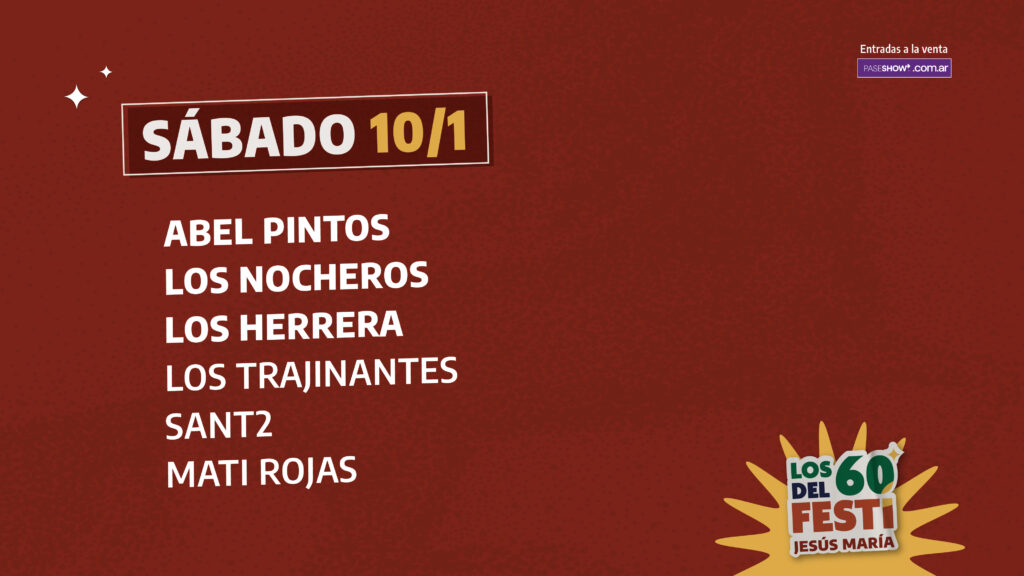 Hoy se lanzó oficialmente, la grilla con la programación de la edición 60 del Festival Nacional de Jesús María. Confirmaron todos los artistas que estarán entre el 8 y el 18 de enero de 2026. Conocelos, en la nota.