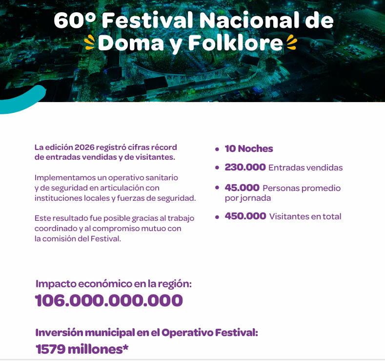 La Municipalidad de Jesús María emitió un informe donde se detalla todo lo que implicó para la ciudad la realización de la 60° Edición del Festival Nacional de Doma y Folklore.