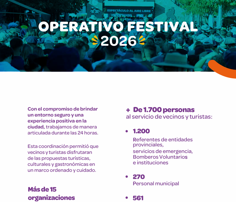 El operativo incluyó acciones vinculadas al ordenamiento del tránsito, la atención sanitaria, la limpieza urbana y la seguridad, además de la articulación de puestos sanitarios, controles bromatológicos e inspecciones comerciales, asegurando el correcto funcionamiento de la ciudad durante el evento.