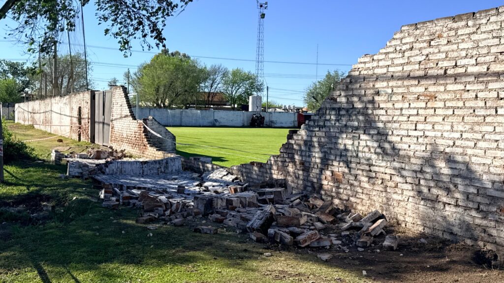 Defensa Civil emitió un informe donde detalló que el “intenso viento” y la lluvia, provocó daños importantes en el mobiliario urbano. El más evidente es el derrumbe de parte del tapiado perimetral de la cancha de Club Alianza, sobre calle Mauricio Yadarola.