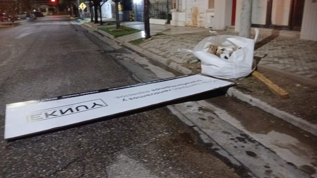 Este viernes por la noche comenzó un fuerte viento que se profundizó durante la madrugada, llegando a ráfagas de 100 kilómetros por hora. Esto ocasionó caída de árboles, postes y cartelería en la vía pública.