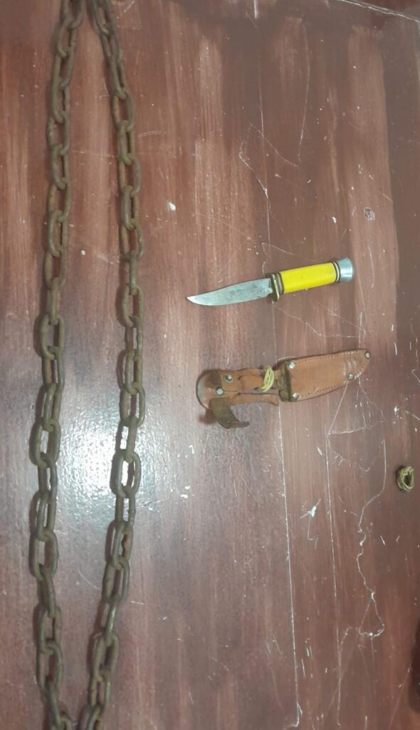 Cuando procedieron a hacer la requisa correspondiente, los efectivos de la Departamental Colón lograron secuestrar de entre sus ropas un cuchillo de 10 centímetros de largo y una cadena de un metro.
