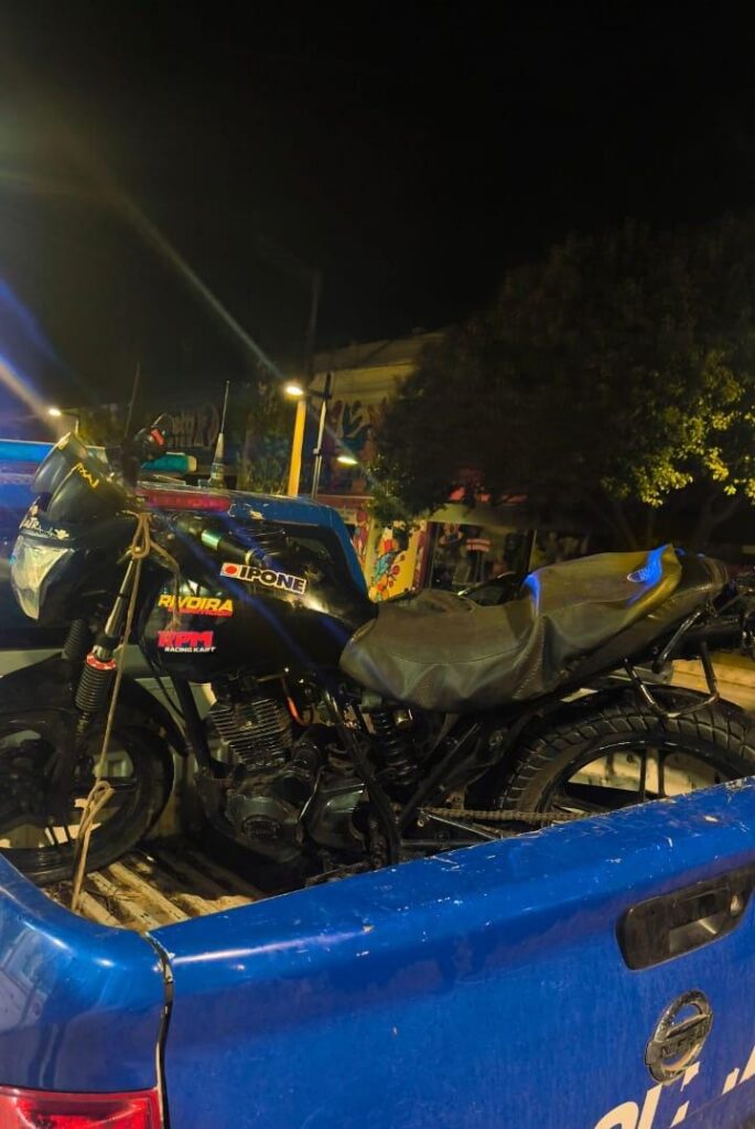 Fue inmediatamente detenido y trasladado a la Comisaría. Además, se secuestró la motocicleta Guerrero 200 centímetros cúbicos en la que circulaba.