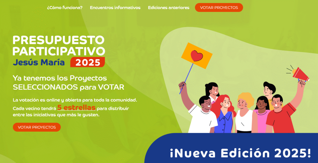La Municipalidad de Jesús María abrió el período de votación del Presupuesto Participativo 2025, una herramienta de participación ciudadana que permite a los vecinos decidir qué proyectos se ejecutarán con fondos municipales.