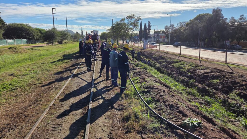 equipos técnicos se encuentran trabajando en la disposición de líneas de 300 mm² de sección. La obra contempla la instalación de un total de 15 cables que se extienden por tramos siguiendo la traza ferroviaria.