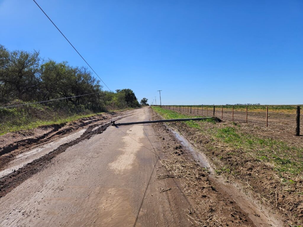 La situación más crítica se registró en la zona rural ubicada al Este de los centros urbanos. Allí se detectaron más de 30 postes caídos o inclinados y cortes en líneas de Media Tensión, lo que dejó sin suministro eléctrico a varios kilómetros de la red.