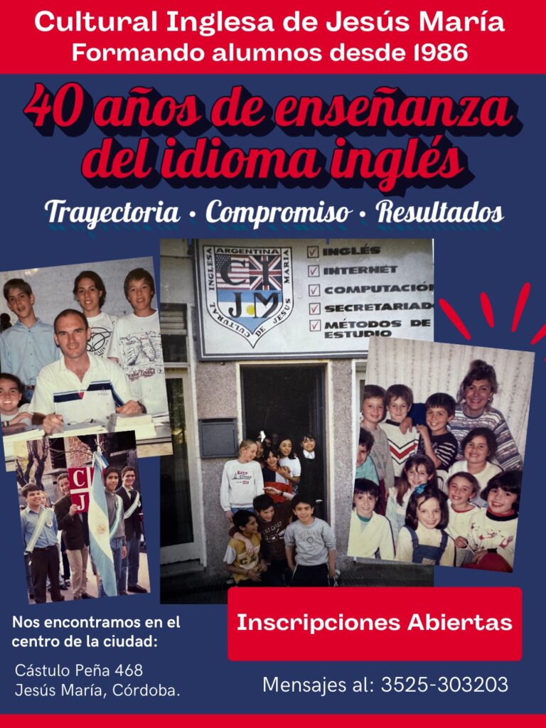 Fundada en 1986 por Martha Zaya y Alejandro Valy, La Cultural Inglesa de Jesús María cumple este año cuatro décadas de trayectoria ininterrumpida en la enseñanza del idioma inglés, consolidándose como la institución con mayor recorrido en la ciudad.