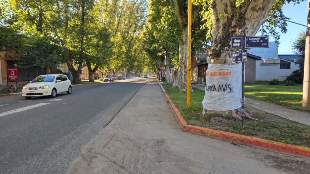 A la vez, la Mesa de Derechos Humanos realizó durante la madrugada una intervención en distintos puntos de la Av San Martín, donde se colocaron carteles con la leyenda: “Más que nunca, Nunca Más”.